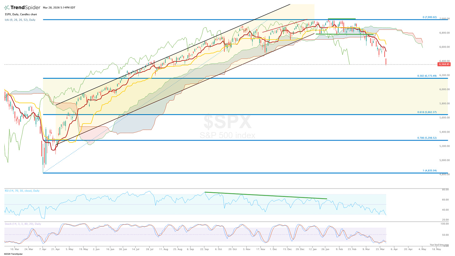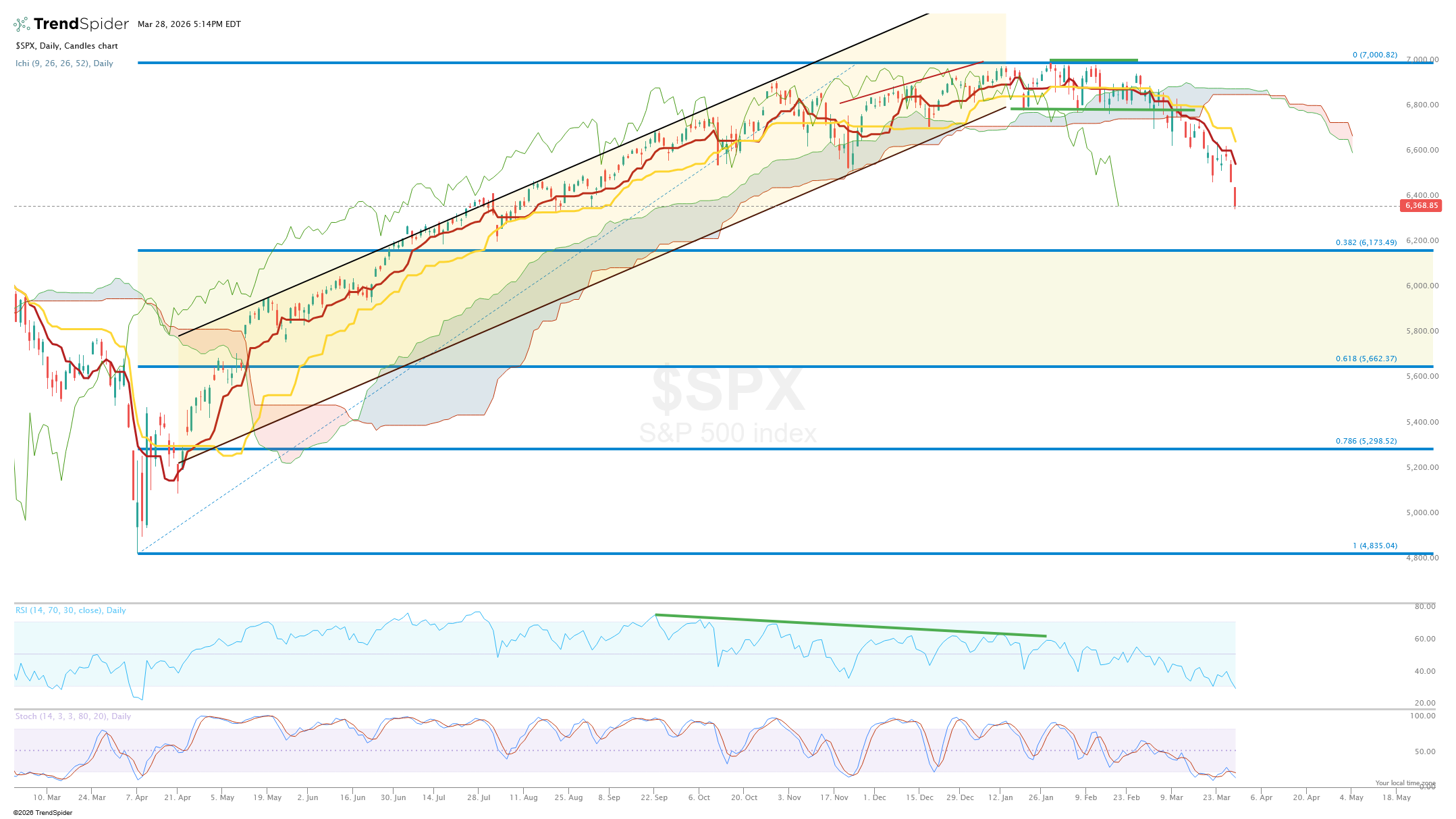 We are still not close to the 38% Fibonacci retracement of the entire upward move from the April of 2025 lows. I believe it is highly probable to reach at least that level. Ideally 5,700 would be a great bottom where we find the 61.8% Fibonacci retracement. However the 5,700 can be reached after a strong bounce and a lower high is formed. So 6,200-6,100 is the area where I will be looking to close short positions and take profits.