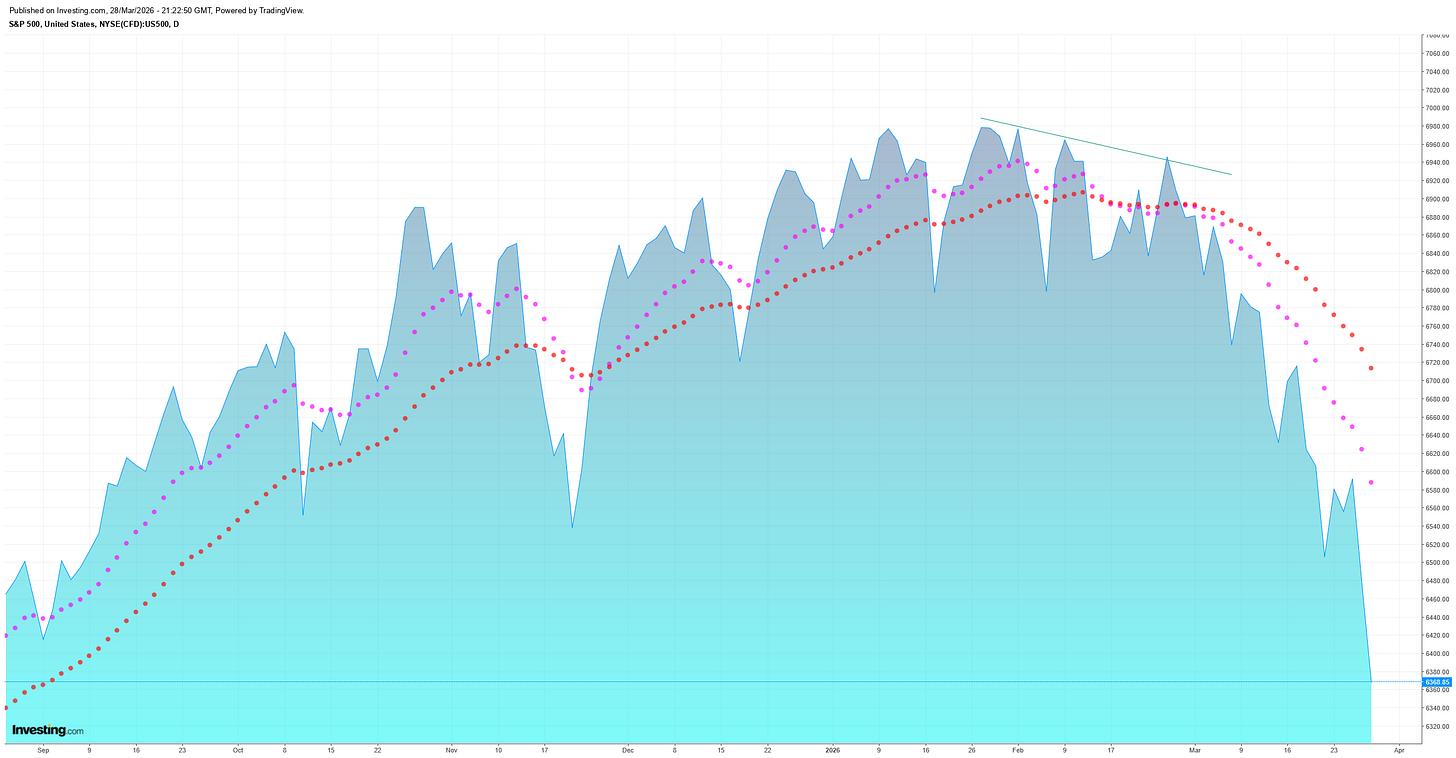 The automated system is short SPX since 6,890. I continue to hold my short position since 6,937 (opened small size short and added at 6,790-6,720 break) back in January (you can read it here).